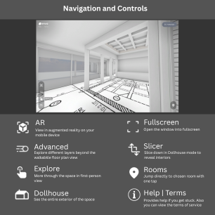 Click, drag, or tap to rotate and move around the room. Get a true sense of scale, layout, and sight-lines.